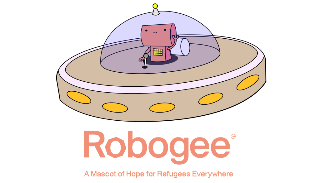 Robogee, whose name stands for robot-refugee, is the world’s first mascot of hope for the refugee community.